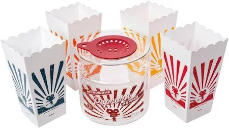 Includes one microwave safe popper with vented lid and four reusable popcorn containers