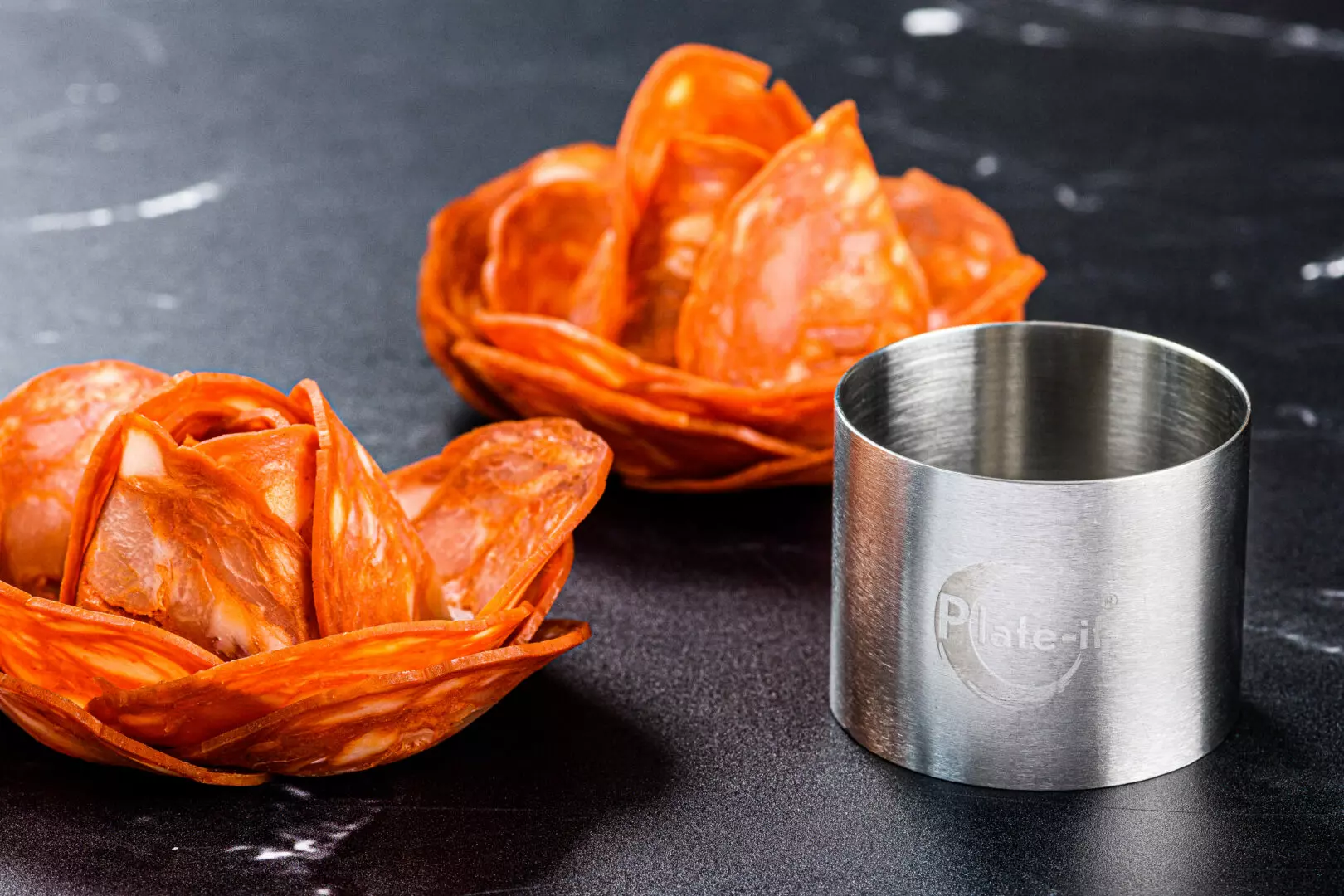 Round garnishing rings(5cm, 6cm, 7 cm) are perfect for sticking out cake or making ingredients circular on your plate.
