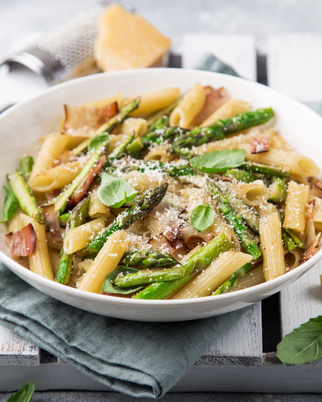 - Blanch the asparagus for 3 minutes and cut into pieces.
