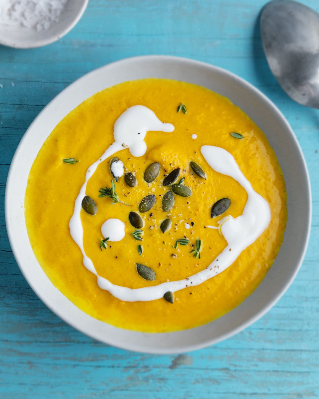 - Stir the soup with the hand blender and season with salt and pepper (if you don’t have a hand blender, a vegetable mill can also do).