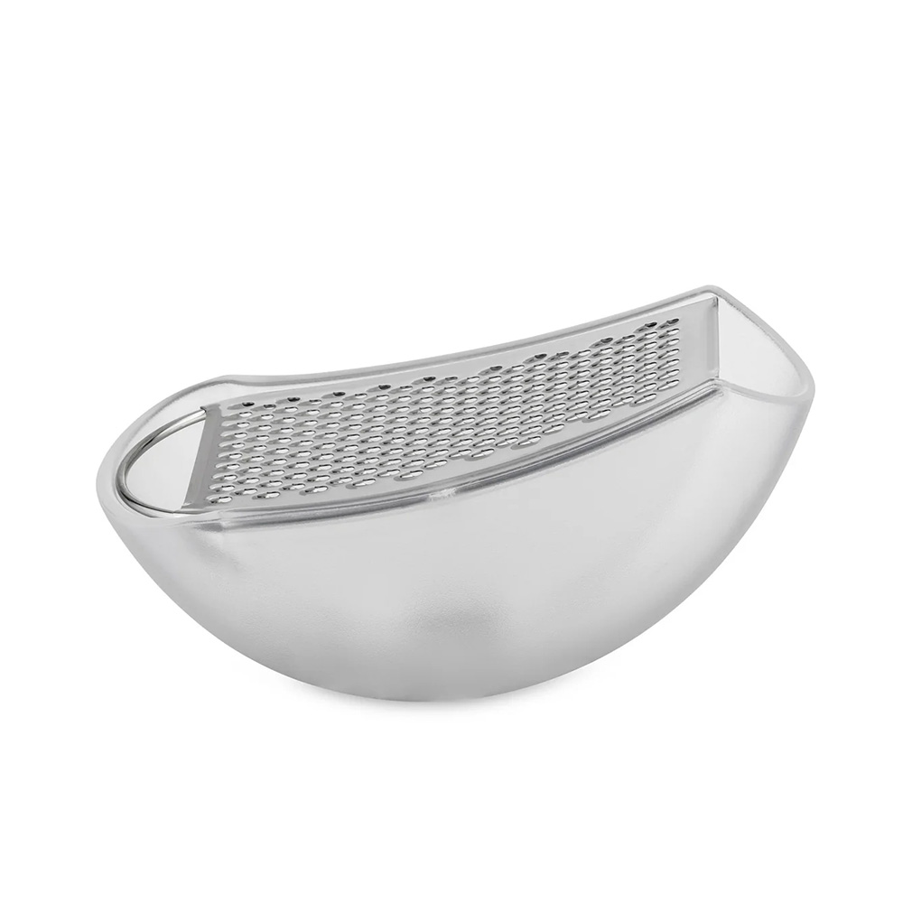 La râpe Parmenide conçue par Alejandro Ruiz réunit deux aspects de la scène domestique traditionnelle : la râpe à fromage et le bol de service. Parmenide devient également une pièce de vaisselle attrayante une fois le fromage râpé. Parmenide fait partie de la collection du Musée d’art moderne de New York.
