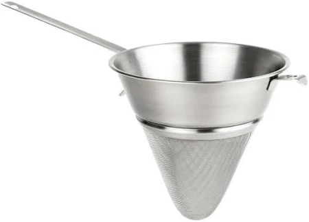 Passoire à bouillon en acier inoxydable 18/8 avec crochet pour casserole.