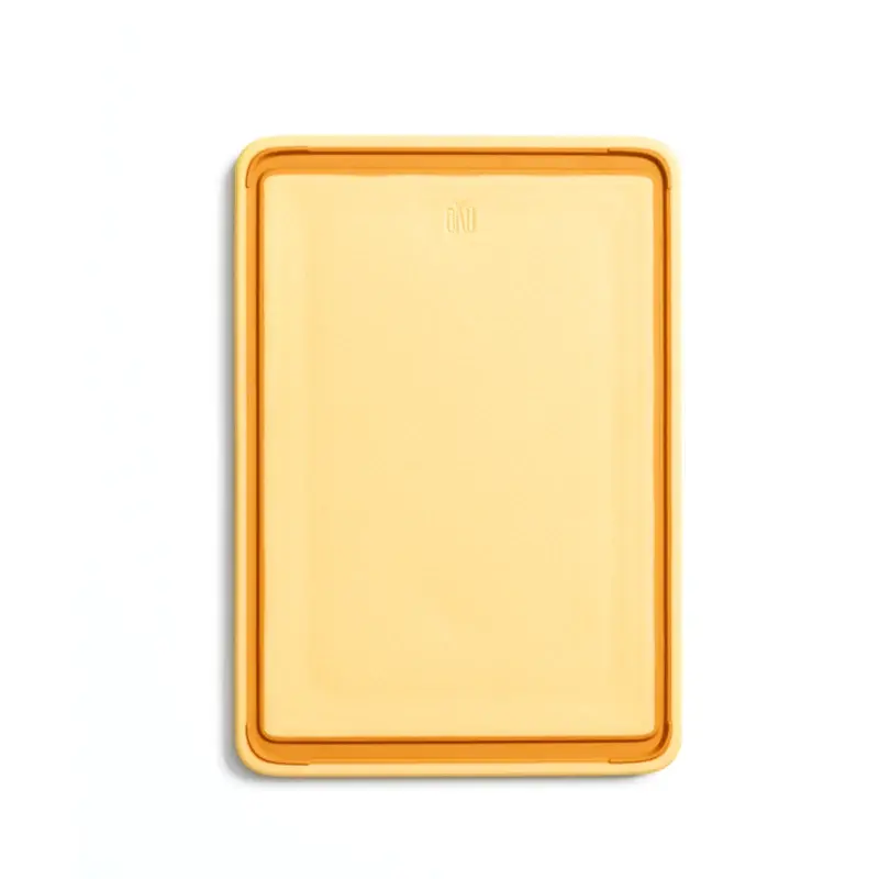Planche à découper faite de plastique suprarecyclé, soit des déchets plastiques broyés et nettoyés qui sont traités à haute température pour donner du plastique suprarecyclé de nouvelle vie.