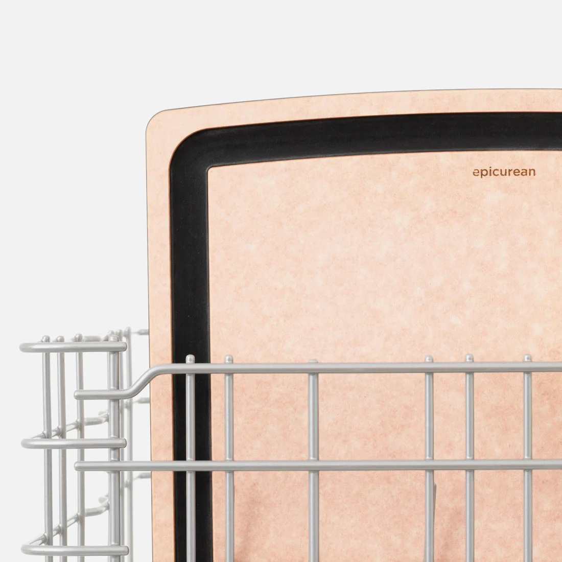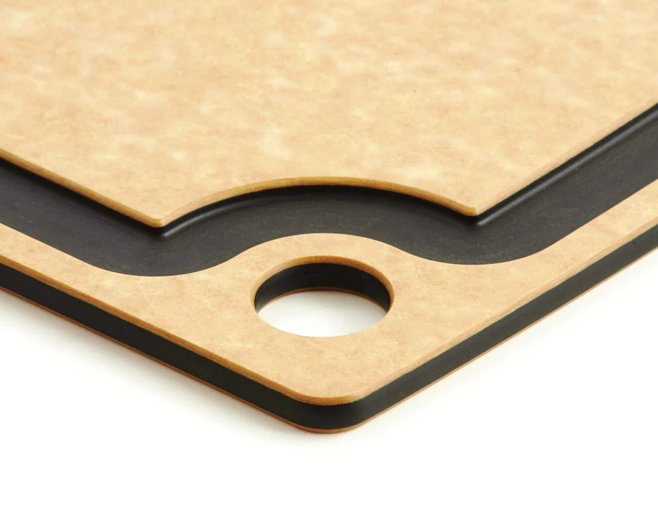 La planche à découper robuste de la série Gourmet présente un profil épais et est dotée d’une rainure sur un côté pour recueillir les liquides et garder les comptoirs propres. De l’autre côté, une vaste surface de préparation offre suffisamment d’espace pour les activités culinaires, tandis que son design bicolore apporte une touche de sophistication simple à votre cuisine.