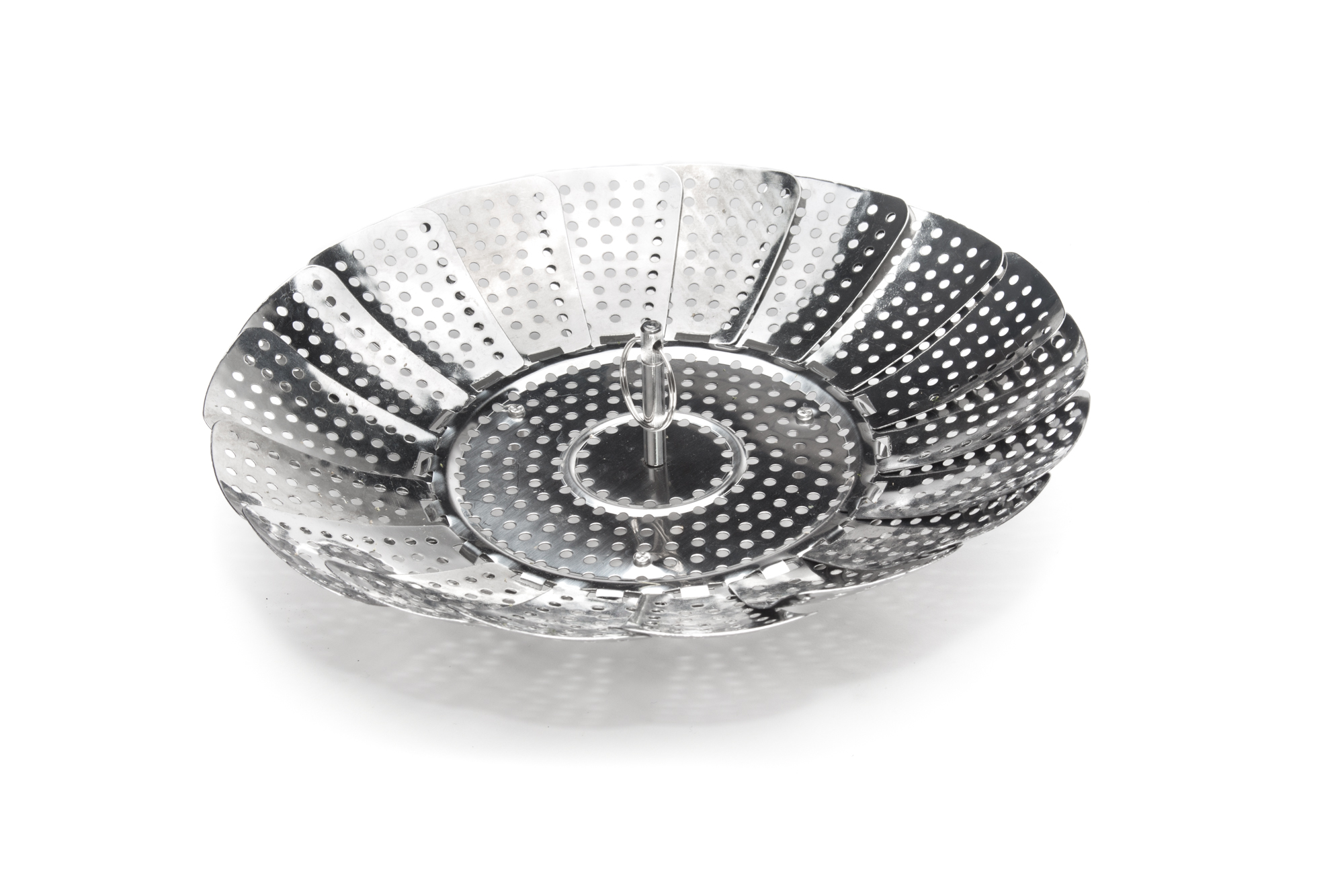 Parfait pour la vapeur de légumes! Ce panier à vapeur en acier inoxydable élégant permet de protéger la saveur et les nutriments dans les aliments. Le panier de 9 pouces est réglable, il peut donc s’adapter facilement à des pots de taille différentes, et il dispose de pieds de 1 pouce pour garder la nourriture au-dessus de l’eau bouillante! Il suffit de vous replier pour un stockage compact lorsqu’il n’est pas utilisé. Découvrez le moyen le plus simple de préserver des vitamines et des nutriments sains dans les légumes.