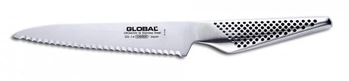 Couteau polyvalent, plus petit et dentelé, pour trancher, émincer et préparer les aliments. La taille du couteau d’office se situe entre celle d’un couteau de chef et celle d’un couteau d’office. C’est un excellent couteau polyvalent pour les fruits et les légumes à peau fine ou à l’intérieur tendre. Couteau idéal pour trancher le salami, les saucisses, les avocats et les petits pains à pâte molle ou dure. La série GS est une collection classique de couteaux de petite et moyenne taille pour la préparation générale et spéciale.