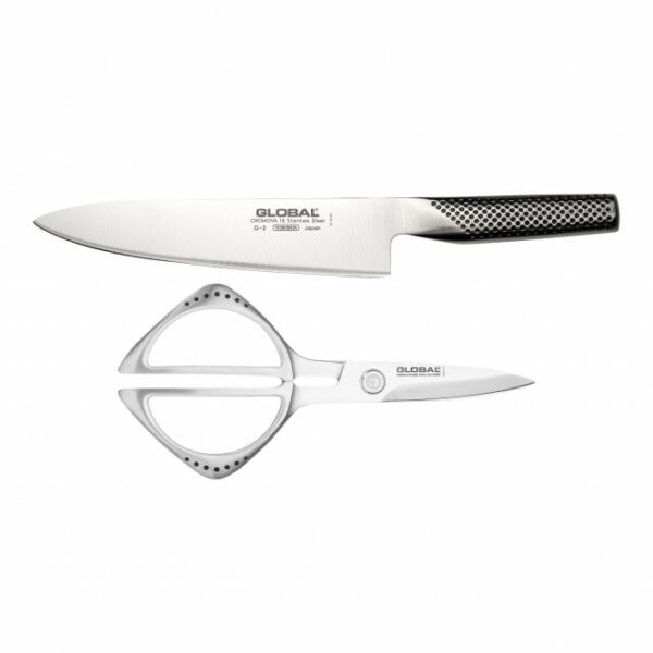 Global Knives est fier de produire un ensemble assorti de ciseaux de cuisine pour compléter votre gamme de couteaux de cuisine Global. Ces ciseaux sont dotés de poignées en acier moulé lourd et sont très solides lorsqu’on les tient en main. Les lames en acier sont épaisses et résistantes et comportent de petites dents qui permettent de bien saisir les filets de poulet et autres viandes. Entre les poignées, vous trouverez également un casse-noix. Ces ciseaux s’adaptent également à la fente en acier de la plupart des blocs Global de type « ship shape ».