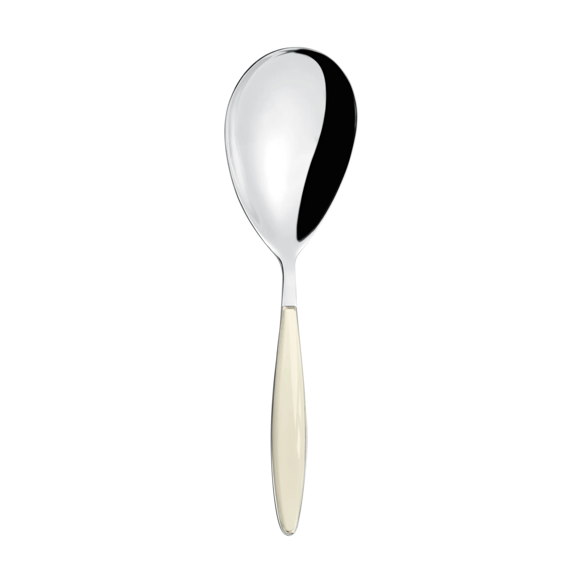 L’acier recouvre toute la longueur de la cuillère, avec des ajouts en plastique bicolore raffinés sur le manche.