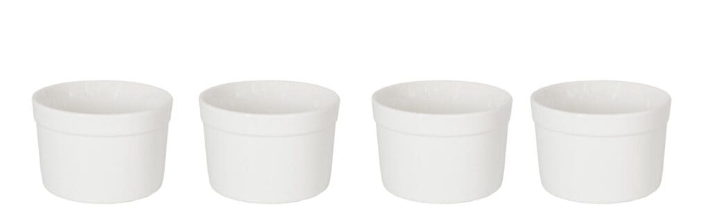 Ce lot de 4 ramequins est le format idéal pour les pâtisseries, les soufflés et les crèmes brûlées ou pour servir les puddings et les crèmes glacées. Les bols sont également parfaits pour servir des snacks, des noix, des olives, des condiments et des sauces. Passe au lave-vaisselle, au four et au micro-ondes. Conçu en Australie.