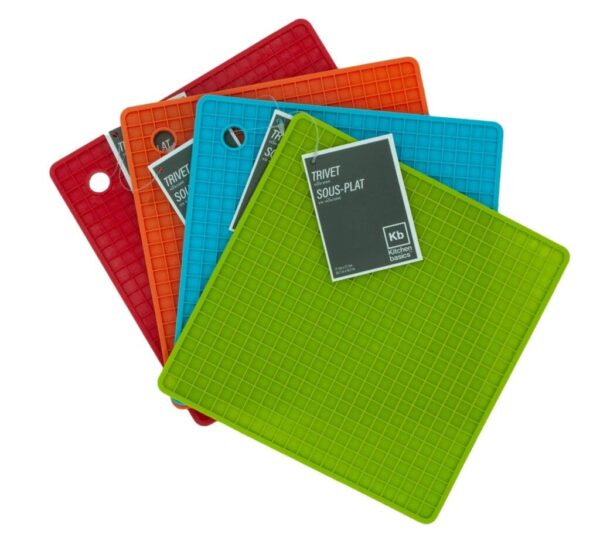 Les petites poches carrées de ces dessous de plat en silicone de couleur assortie dissipent la chaleur plus rapidement que n’importe quel autre modèle. Ils résistent à une chaleur allant jusqu’à 300 °C et peuvent être lavés au lave-vaisselle. Ils sont brillants et amusants à utiliser dans n’importe quelle cuisine !