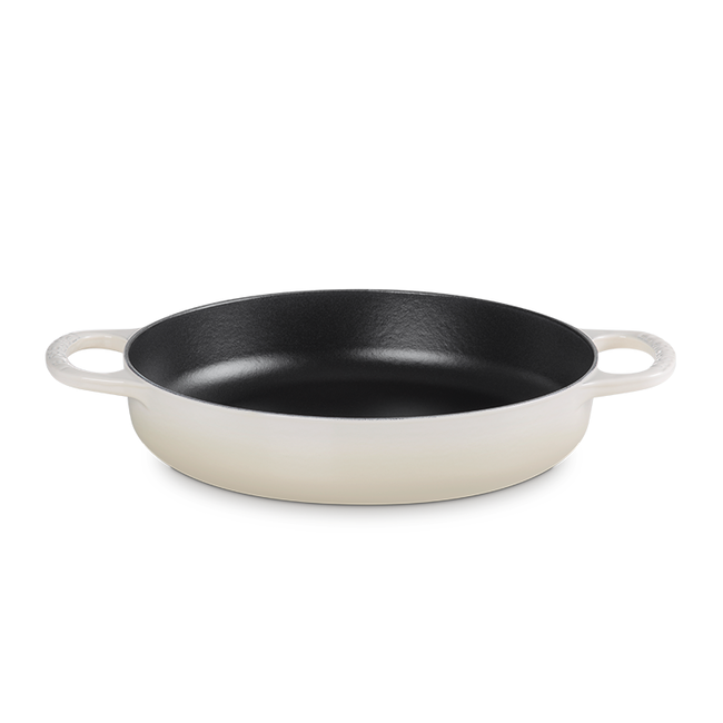 Notre poêle quotidienne en fonte émaillée a une profondeur généreuse et une large surface qui est parfaite pour tout, du rôtissage à la friture à la poêle, en passant par les plats tout en un, les sauces mijotées et bien plus encore. Elle allie les avantages d’une braisière à la facilité d’utilisation d’une poêle à frire ou d’une sauteuse. Les côtés légèrement incurvés permettent de remuer, retourner et servir sans effort, tandis que les poignées surdimensionnées offrent une prise sûre pour passer de la cuisinière au four et à la table.