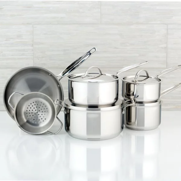 Confederation est la nouvelle ligne d’ustensiles de cuisine de haute qualité de Meyer, fièrement fabriquée au Canada. Fabriqués en acier inoxydable 18/10, ils sont dotés d’un fond encapsulé pour une conduction efficace de la chaleur et conviennent à toutes les tables de cuisson des cuisines modernes, y compris l’induction. Poignées rivetées durables et sûres, lèvres anti-gouttes, couvercles à ajustement précis, allant au four et au lave-vaisselle, la gamme Confederation est construite pour durer et nous la soutenons avec notre exceptionnelle garantie à vie. Convient au four jusqu’à 500˚F. L’ensemble comprend des casseroles de 1,5 L, 2 L et 3 L, un faitout de 5 L, un cuit-vapeur de 1,5 L, une poêle à frire en acier inoxydable de 24 cm et 4 couvercles en acier inoxydable.