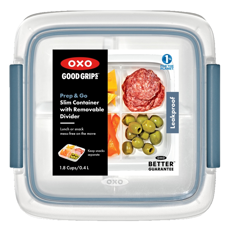 Contenant mince avec diviseur, 400 ml (1.8 tasses), sans BPA.