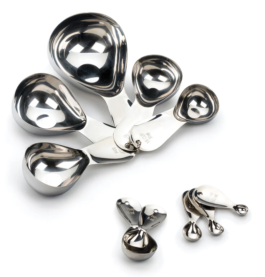 L’ensemble comprend des mesures de 1 tasse, ½ tasse, 1/3 de tasse, ¼ de tasse et 1/8 de tasse.
