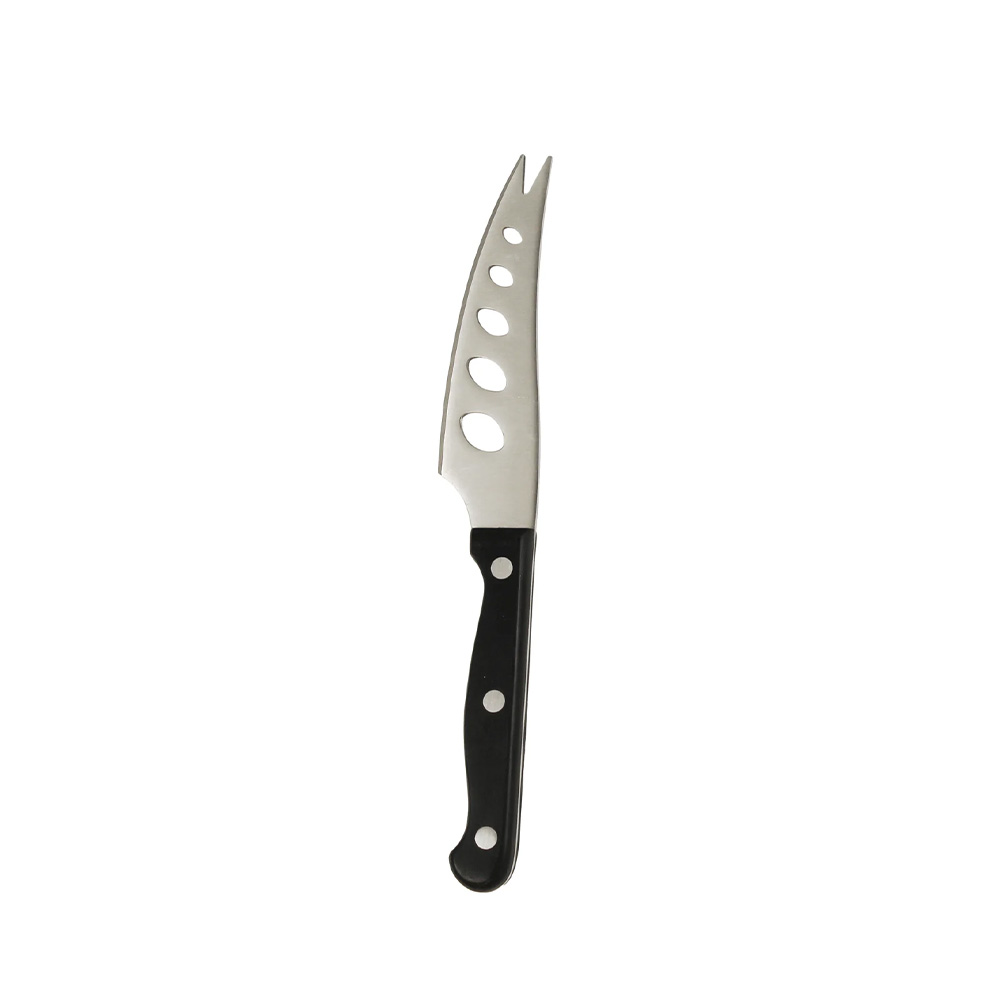 Il est doté de trous à travers la lame qui empêchent le fromage de coller ainsi que d’une petite fourchette sur la pointe qui permet de casser des morceaux et de servir sans changer d’outils.