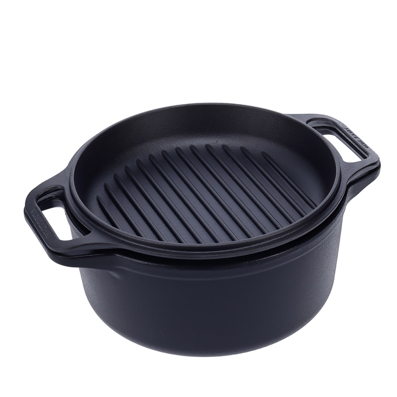 Cocotte combo polyvalente, 5.7L, en fonte assaisonnée.