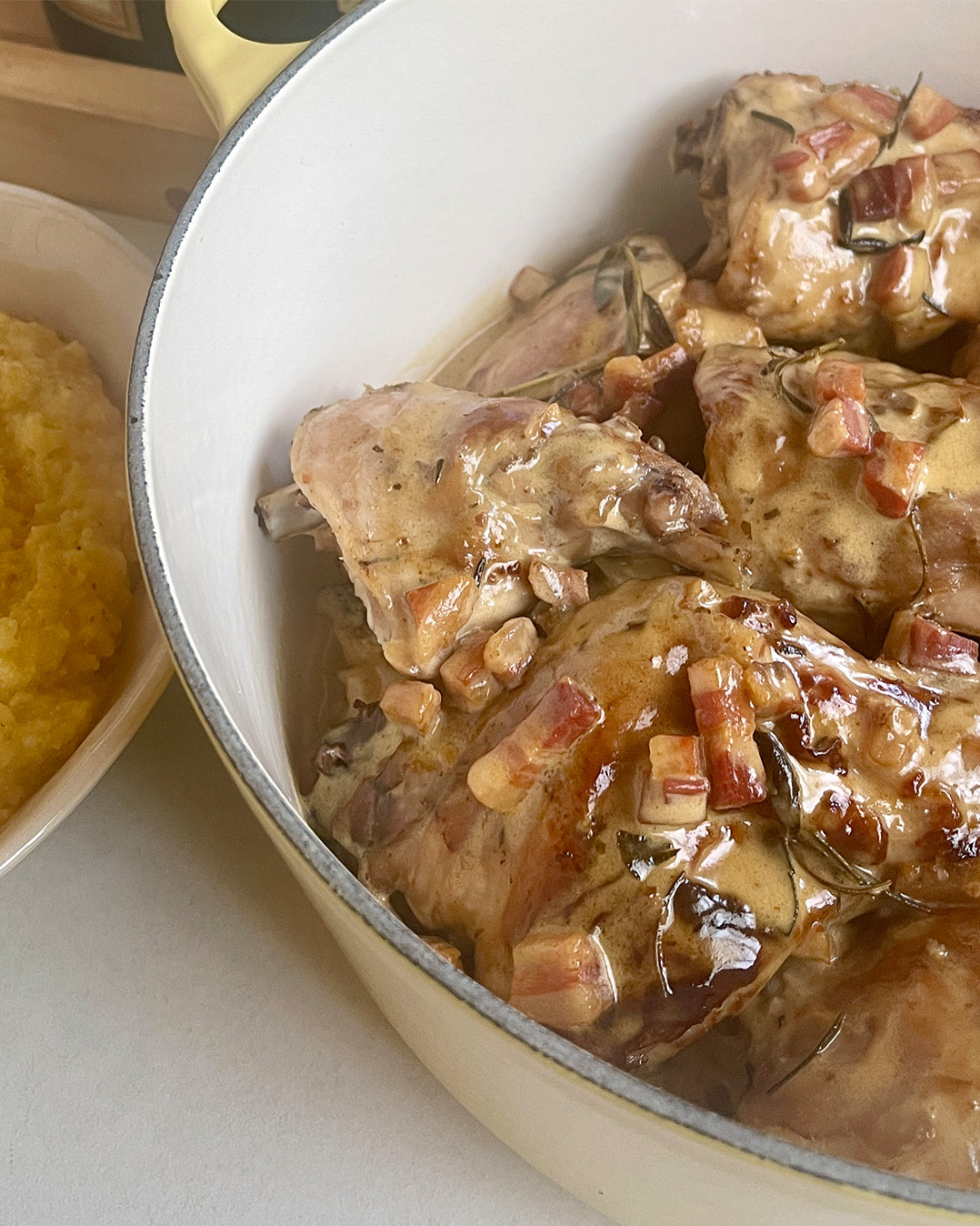 - Chauffer l’huile d’olive dans une casserole 28 cm Julienne/Granit, ajouter les côtes levées et rôtir jusqu’à coloration.